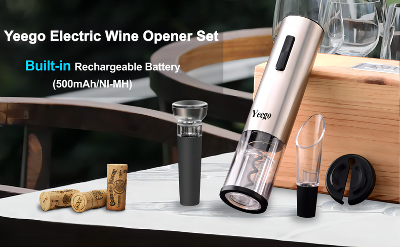 - 【Rechargeable - Built in Ni-MH Battery】: Electric wine opener with built-in rechargeable 500mAh NiMH battery. One charge can last for many times, about 100 bottles. With FCC certification standards.