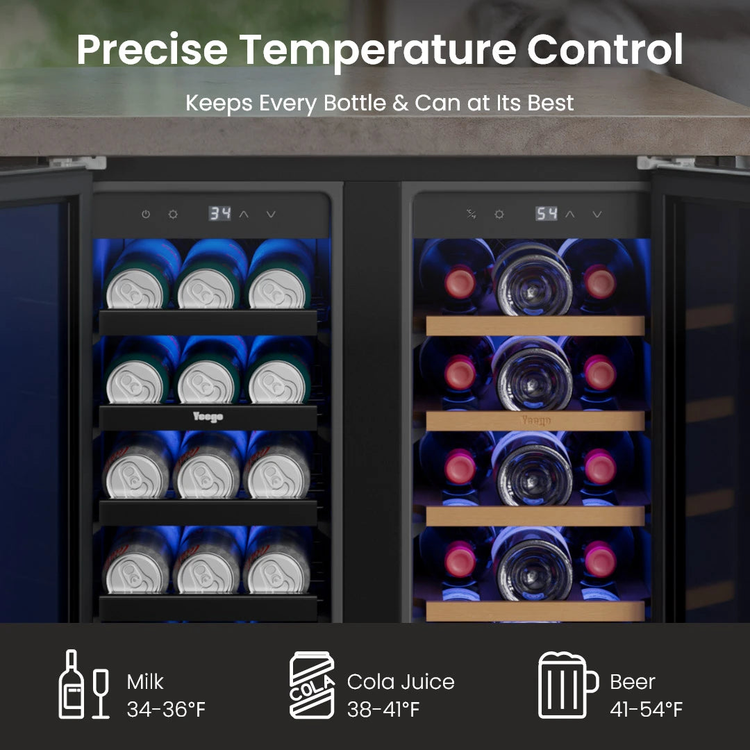 Upgrade your outdoor entertaining with the Yeego 24'' Outdoor Wine & Beverage Fridge — the perfect balance of style, capacity, and performance. Designed for patios, decks, and outdoor bars, it features dual cooling zones powered by twin evaporators to keep wine and beverages at their ideal temperatures.
