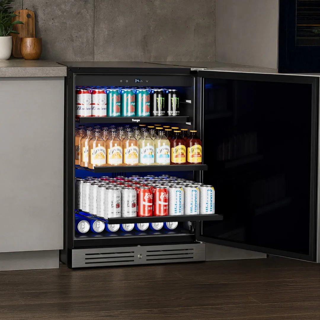Engineered to perform under the sun, the Yeego 24'' Outdoor Beverage Fridge features a triple-layer insulated door and a stainless-steel body that block external heat and keep the cold air inside. The upgraded cooling system keeps your drinks perfectly chilled between 34°F–54°F, even when outdoor temperatures rise. With sealed electronics, it’s built to handle patios, decks, and poolside setups without missing a beat.