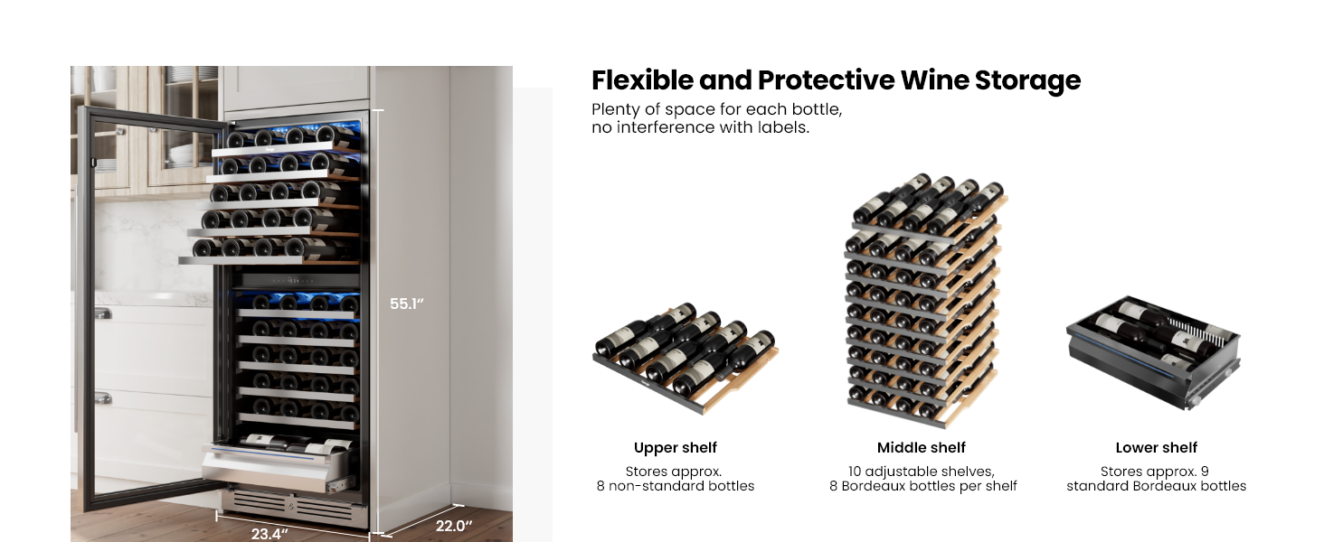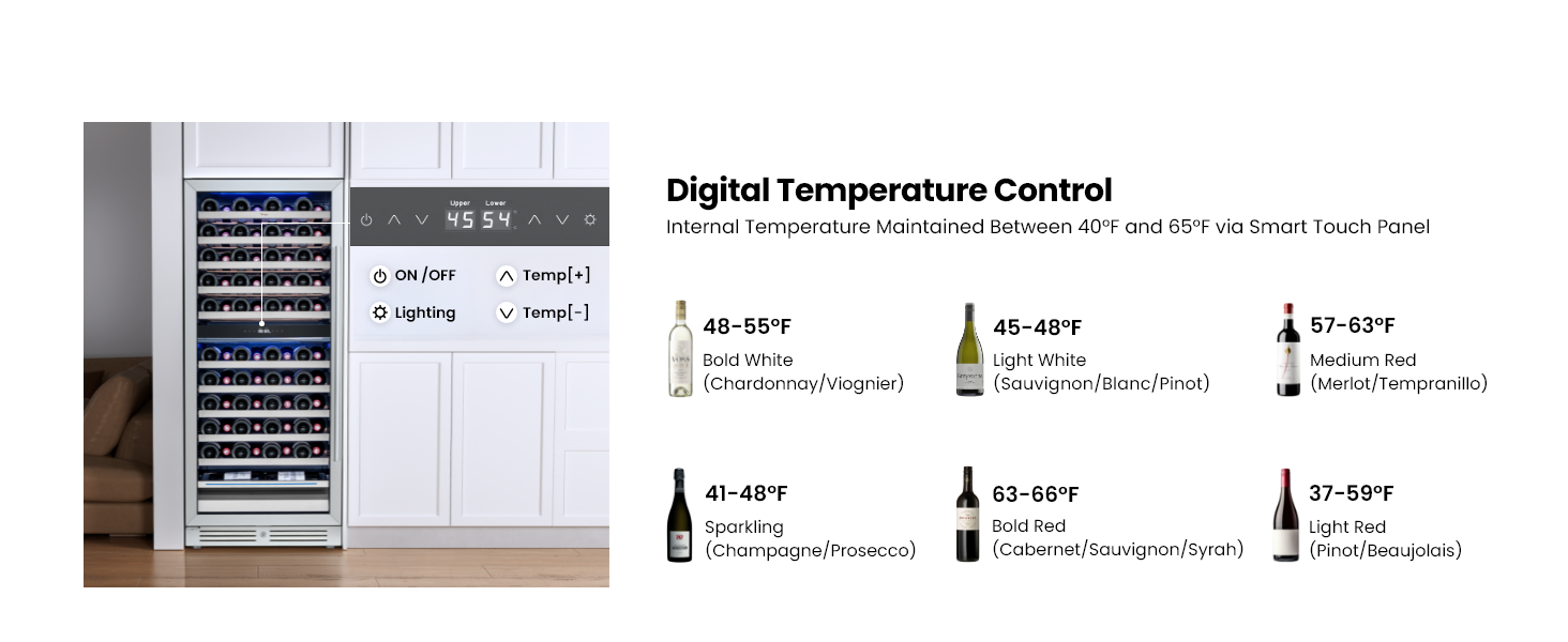 Note: Spirits and fortified wines should not be stored in wine coolers as they require different conditions.