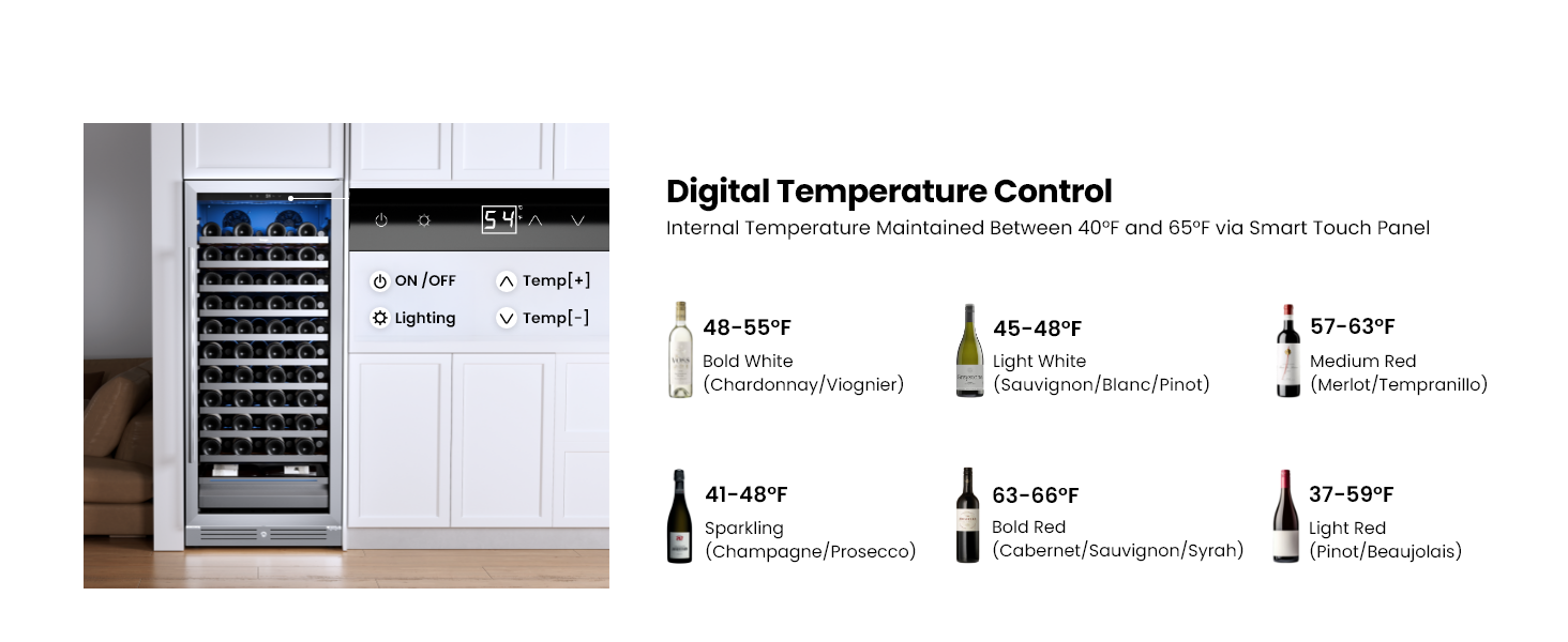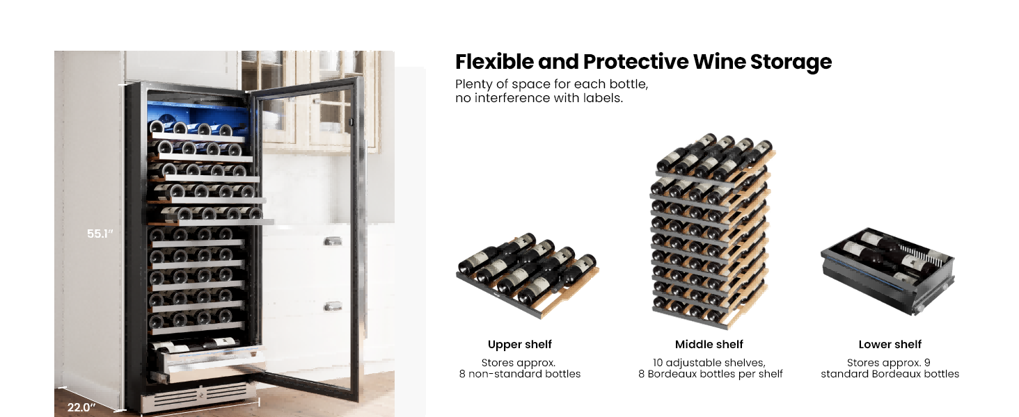 Note: Spirits and fortified wines should not be stored in wine coolers as they require different conditions.